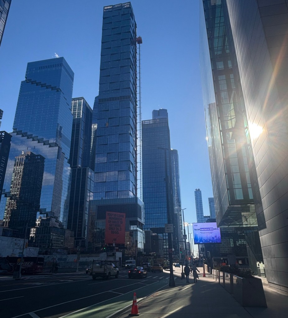 Die New Yorker Architektur darf recht hoch gebaut werden. Grund dafür ist, dass der Untergrund aus Fels besteht und damit eine hohe Stabilität bietet, so durfte ich erfahren.